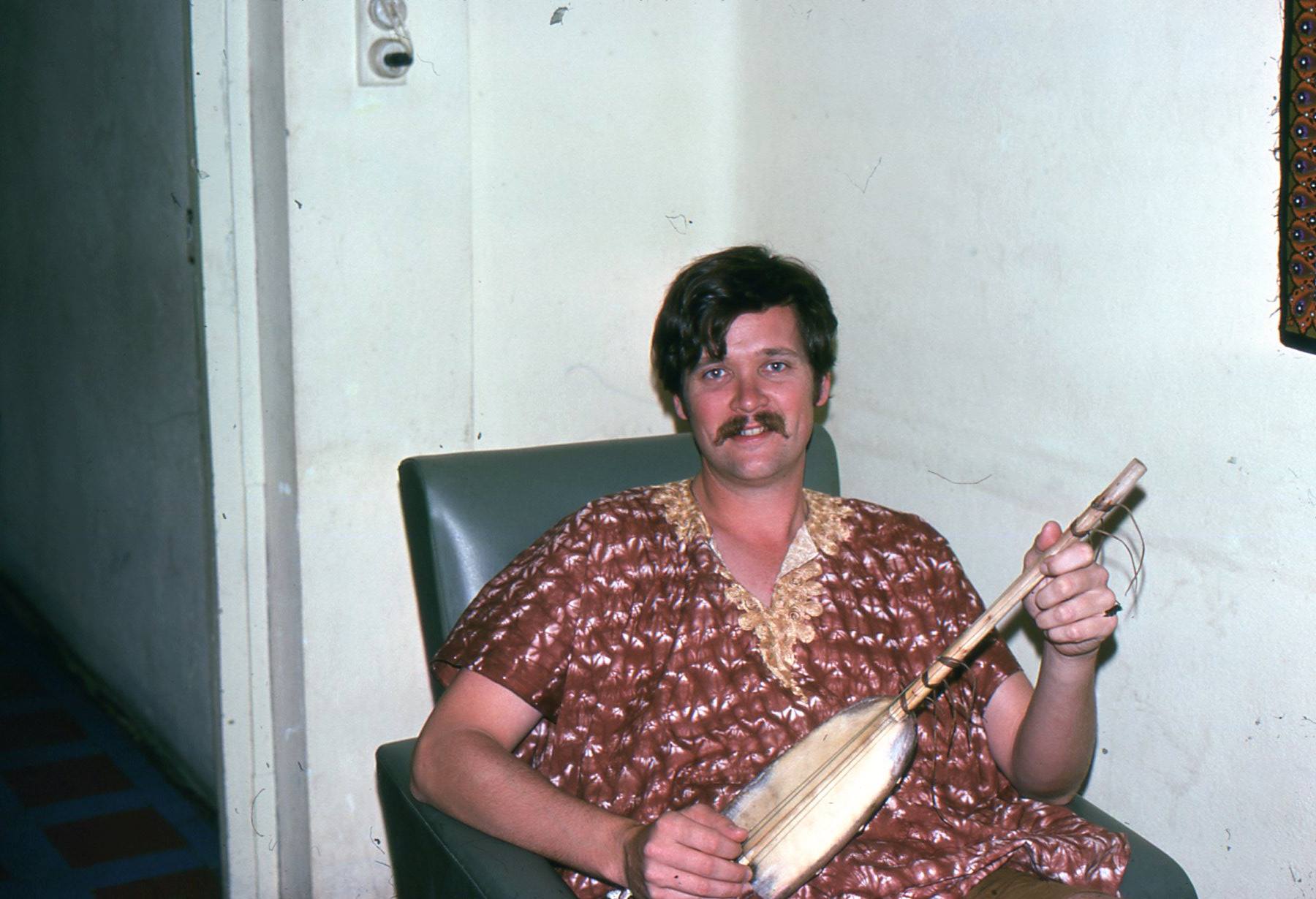 In July 1973 I was appointed to an Individual Placement Position with the U.S. Peace Corps as the Resident Ethnomusicologist to the Cultural Archives of the Republic of the Gambia, West Africa, which is hard to say in one breath. My job was to travel throughout the country and interview musicians, collect artifacts, and generally help to preserve the rich cultural heritage of this region of West Africa. Thus began a lifelong love for the culture, cuisine, art, dance, and music of Africa. I completed my own dissertation research on a small guitar-like instrument (in above picture) in Gambia and a couple of years later in Senegal. I have remained friends with one family, the Jaitehs, to whom I am now an honorary uncle, and some of my ashes will some day be scattered in their compound. Here is a group photo of some of them, standing around a taxi I helped them purchase.